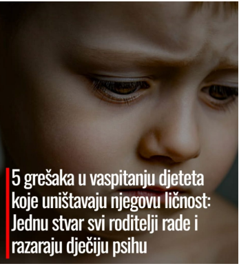 Danas ćemo pisati o pet grešaka koje roditelji prave kada je vaspitavanje djece u pitanju. Jednu stvar rade svi roditelji i uništavaju na taj način dječiju psihu. O čemu se tačno radi pročitajte u nastavku.