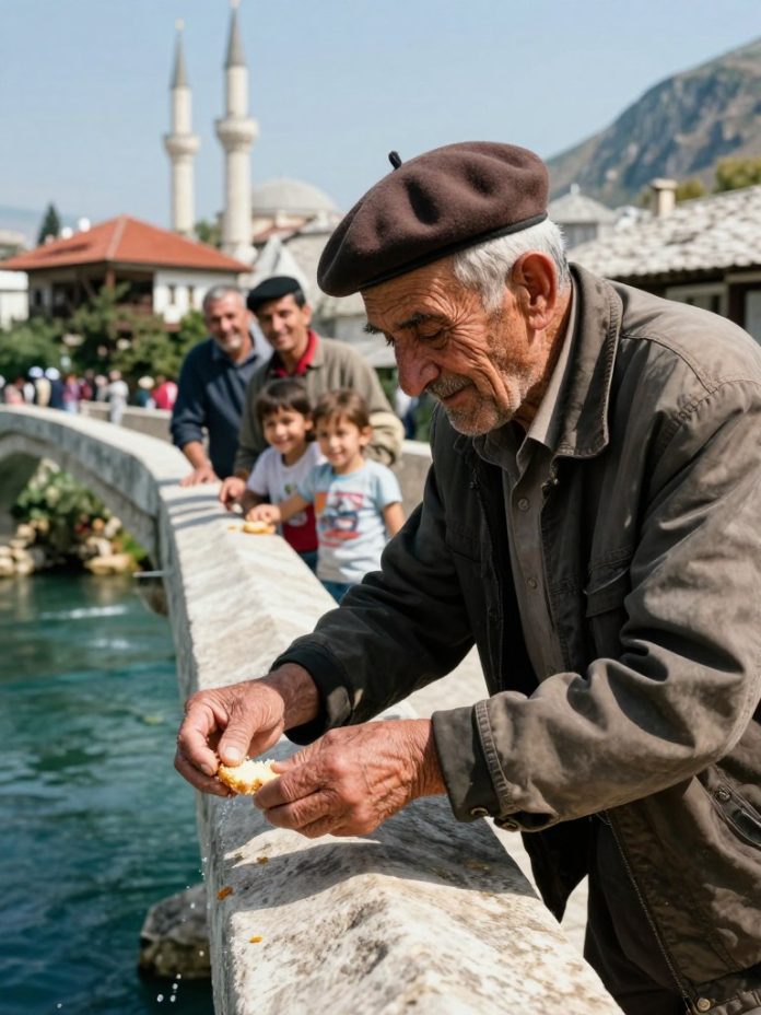 - Ibro je znao da nešto nije u redu, ali nije mogao ništa reći. Svako jutro, uz miris sveže pečenih kifli, on je stajao na mostu, gledajući u vodu i bacajući jednu kiflu. Činilo se da je rijeka jedini prijatelj koji ga je razumio, iako nikome nije objašnjavao zašto to radi.