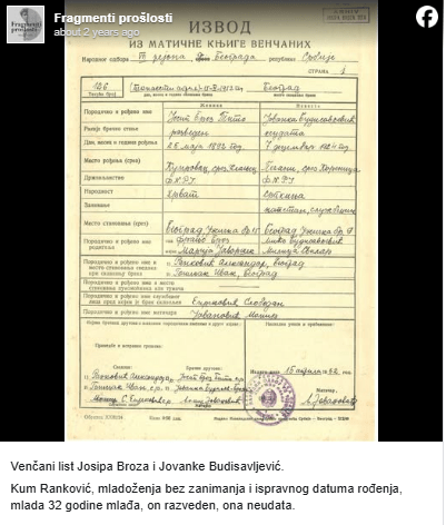 Takođe, u ovom dokumentu piše da Tito nije imao zanimanje, dok je Jovanka bila prikazana kao 32 godine mlađa od njega. Mnogi su verovali da je brak Tita i Jovanke bio pun nesuglasica, iako je ona ostala uz njega do njegove smrti 1980. godine. Tumačenja su različita, a i glasine o njihovom navodnom razvodu krajem 70-ih godina još uvek se prepričavaju. Iako su postojale špekulacije o njihovom odnosu, znamo da su zajedno proveli mnogo godina.