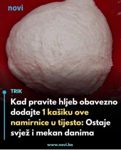 Sljedeći put kad budete mijesili tijesto, sjetite se ove male tajne: 1 kašičica meda može potpuno promijeniti rezultat. Hljeb koji ostaje mekši, mirisniji i svježiji čak i nakon nekoliko dana, bez ikakve hemije ili dodatnih troškova. Sitnice poput ove mogu napraviti ogromnu razliku – a razliku ćete osjetiti već pri prvom zalogaju. Probajte već sljedeći put i uvjerite se u rezultate!