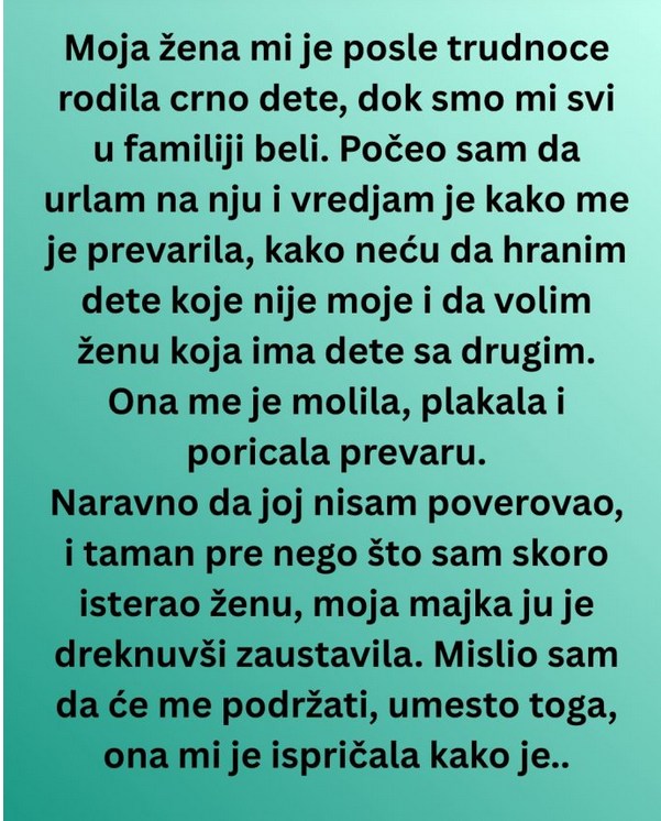 Tada se desio ključni obrat – njegova majka je odlučila progovoriti. U trenutku kada je očekivao podršku, ona mu je otkrila istinu koja ga je potpuno šokirala. Majka mu je ispričala da on zapravo nije biološko dete svog oca, jer je ona imala aferu sa drugim muškarcem. To je značilo da je on rođen iz veze koju je celog života verovao da nije postojala. Otkriće ove tajne bilo je neverovatno, ali istovremeno je pružilo odgovore na mnoge njegove sumnje. Dete koje je smatrao “neobičnim” zbog boje kože zapravo je nasledilo gene svog biološkog oca, a ne onog čoveka kojeg je smatrao svojim ocem.