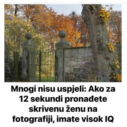 Optičke iluzije su postale pravi hit na društvenim mrežama, gdje ljudi iz cijelog svijeta dijele svoje otkriće, pokušavajući pronaći skrivene elemente u složenim scenama koje često nadmašuju njihova očekivanja. Jedna od najnovijih iluzija koja je izazvala veliku pažnju javnosti je fotografija koja skriva ženu u bogatoj, višeslojnoj sceni. Ova slika, snimljena u kasnu jesen, predstavlja pravi izazov za naše sposobnosti zapažanja. Iako mnogi pokušavaju pronaći skriveno lice, samo rijetki uspijevaju u tome. Ova igra zapažanja ne testira samo naše vizualne vještine, već i strpljenje i pažnju na detalje, izazivajući osjećaj postignuća kada konačno uspijemo primijetiti ono što je skriveno.