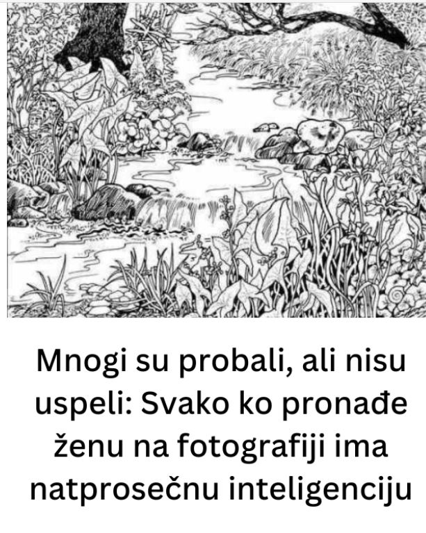 Zagonetka prikazuje crno-belu ilustraciju prirode, sa gustim drvenim grančicama, prepletenim krošnjama i složenim oblicima lišća, koji stvaraju miran šumski pejzaž. Međutim, ono što ovu sliku čini posebnom jeste skriveni element koji mnogi ne mogu odmah da prepoznaju: lice mlade žene koje je pažljivo uklopljeno u pozadinu.