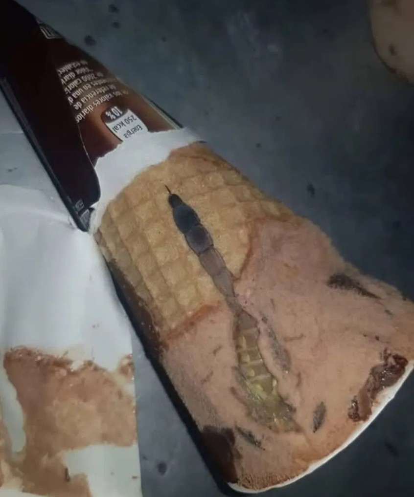 U sladoledu se nalazilo nešto što tu nikako nije smjelo biti – mali škorpion, smrznut unutar čokolade. Prizor je bio šokantan i izazvao je trenutni strah i nevjericu.