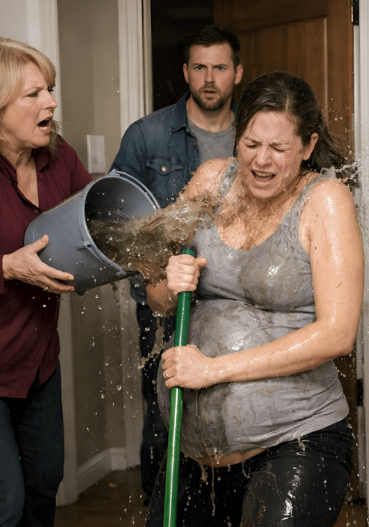 Upravo tada otvorila su se vrata. Muškarac je zastao na pragu. Pred njim je stajala majka s kantom u ruci i njegova supruga, mokra, vidno potresena, sa suzama u očima. U tom trenutku, svijet mu se suzio na dvije slike — žena koju voli i majka koja je prešla granicu.