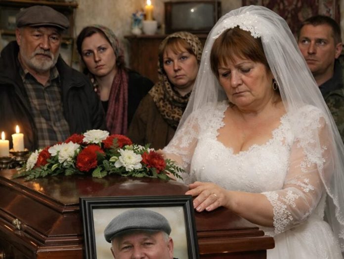 Tišina koja je nastala bila je gotovo nepodnošljiva, dok su svi prisutni okrenuli poglede prema njoj. Žena u beloj venčanici, s tugom i suzama u očima, izgovorila je reči koje su sve prisutne duboko šokirale: “Došla sam na pravo mesto, u sobu u kojoj je moj muž.” Ove reči su sve promenile. Šokirani, okupljeni nisu mogli da veruju onome što čuju. Da li je to bila greška ili nešto mnogo dublje? Žena u venčanici je nastavila: “Ja sam njegova prva i jedina ljubav. On je obećao da će se vratiti. Čekala sam ga čitav život, a on se nikada nije vratio.”
