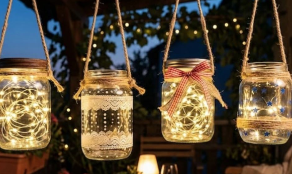 Posebno zanimljiva ideja jeste korištenje ovih lampi na otvorenom prostoru. Ako imate balkon, dvorište ili terasu, tegle se mogu pretvoriti u male viseće fenjere. Potrebno je samo dodati žicu ili konopac oko vrata tegle i objesiti je na ogradu, granu ili pergolu. Kada padne noć, ove lampe stvaraju romantičan ambijent koji je savršen za ljetne večeri.