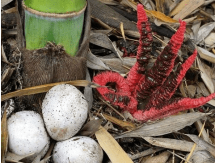 • U početku izgledaju poput bijelog jajeta zakopanog u zemlji, a zatim se, kad sazriju, raspršuju i iz njih izrastaju crveni izdanci nalik prstima.