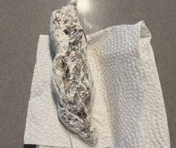 - Suhu, tamnu, staru kobasicu, umotanu u foliju, koja je neobjašnjivo završila u vreći brašna.
