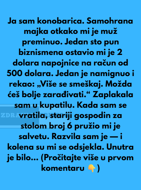 Njena plata je skromna, a svaki novčić mora biti pažljivo raspoređen. Živjeti od napojnica može biti stresno, ali ljubav prema djetetu daje joj snagu da se bori. Svaki put kad pomisli da ne može dalje, sjeti se da nije samo ona u toj borbi – ona to radi zbog svog djeteta.