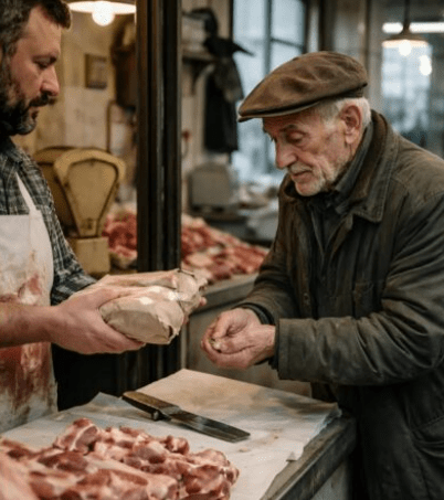 • Mesar je, gledajući ga, shvatio da starac nije samo siromašan, već da je i duboko ponizan.
