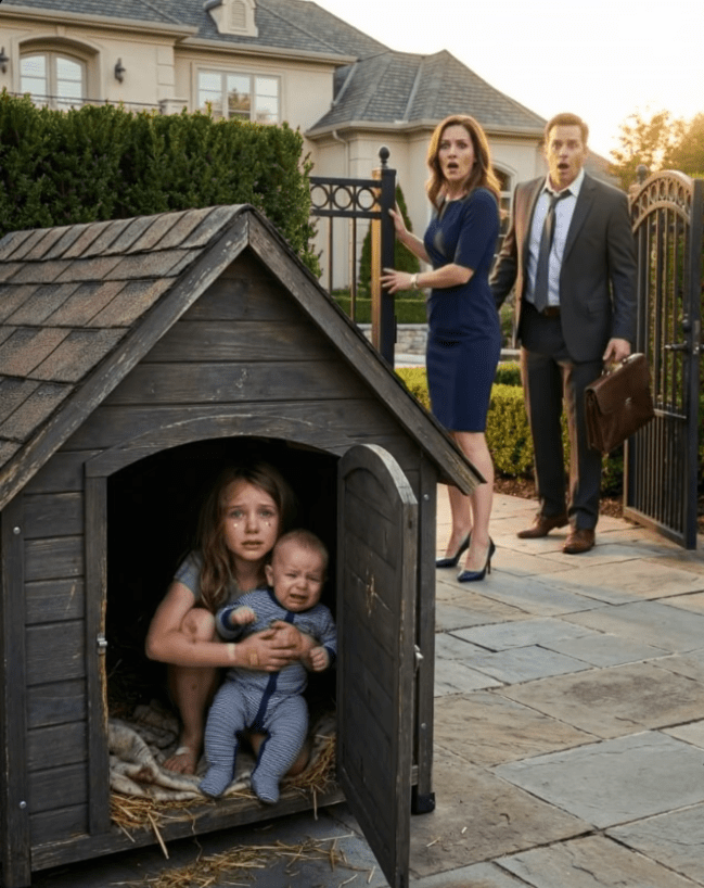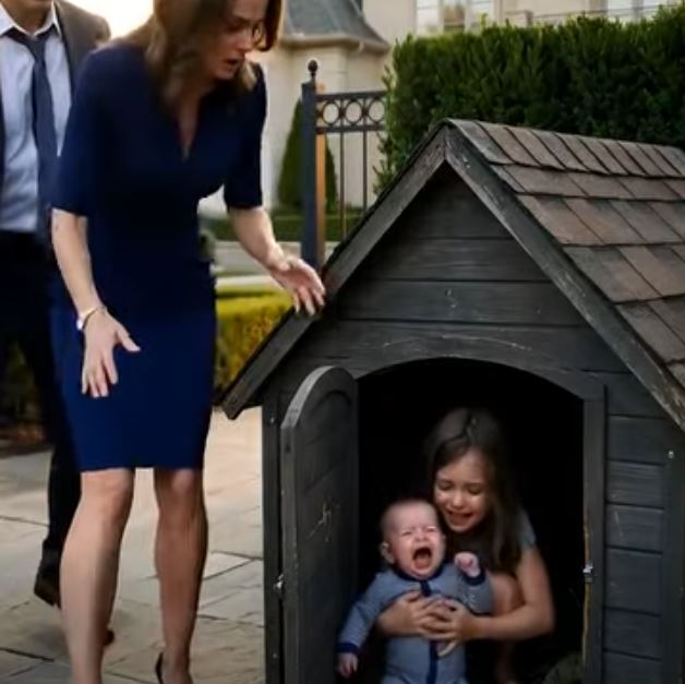 Glas koji je usledio bio je kratak i oštar. Deca su se ukočila. U tom trenutku, ono što je počelo kao opomena, pretvorilo se u čin koji će promeniti sve odnose u toj kući. Bez podignutog tona, ali sa hladnom odlučnošću, rekla im je da izađu napolje i „nauče disciplinu“. U dvorištu, pored pažljivo negovanih ruža, stajala je mala pseća kućica – mračna, tesna i nimalo nalik mestu za decu. Kada su se vrata otvorila, starija devojčica je instinktivno privila bebu uz sebe, moleći tihim glasom da ih ne kazni. Odgovora nije bilo. Samo gurnuta leđa i zvuk zatvaranja vrata.