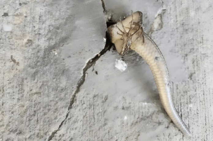 U tom trenutku, strah je počeo da se mijenja. Umjesto panike, javilo se sažaljenje. Shvatio sam da se u pukotini zida nalazi mali gušter, skink, koji se zaglavio i nije mogao da se oslobodi. Bio je iscrpljen, dezorijentisan i na ivici snage. Njegovo tijelo se pomjeralo, ali bez ikakvog napretka. Ta slika probudila je snažan osjećaj empatije.