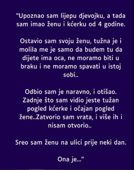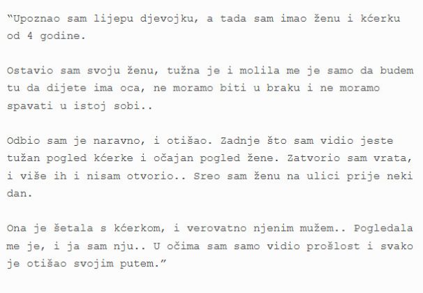Danas ćemo pisati o zanimljivoj ispovijesti jednog momka koji je upoznao lijepu djevojku. Imao je problem s obzirom da je tada imao ženu i kćerku od 4 godine, a šta je poslije bilo pročitajte u nastavku.