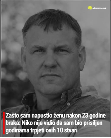 Napustiti brak nakon dvadeset tri godine zajedničkog života nije jednostavna odluka, niti nešto što se može donijeti u trenutku bijesa. To je proces kroz godine tišine, samozatajanja i postepenog gubitka sebe. Odlazak iz takvog odnosa dolazi uz osjećaj krivnje i straha od osude, s pitanjima poput: „Kako si mogao?“, „Što s djecom?“, „Zašto sad?“. Međutim, iza tih pitanja krije se istina koju mnogi ne žele vidjeti – cijena koju sam plaćao svaki dan u ime mira koji nikada nije postojao.